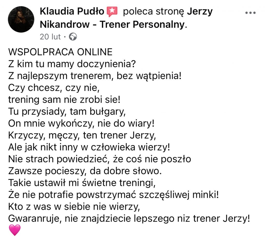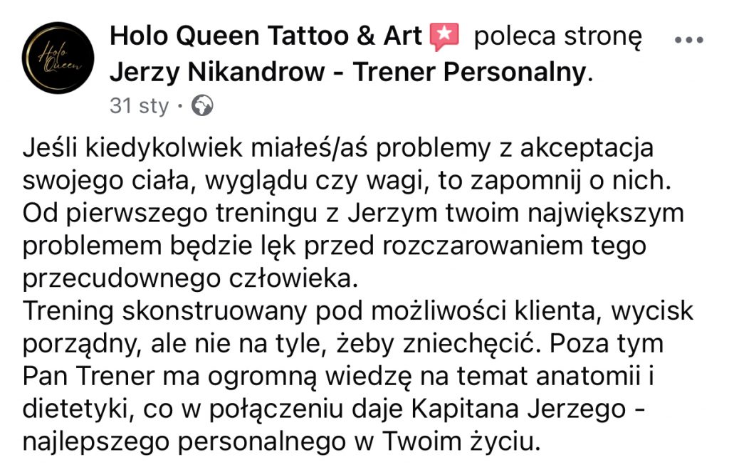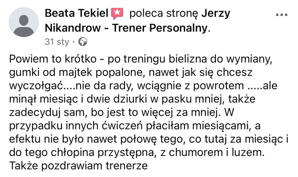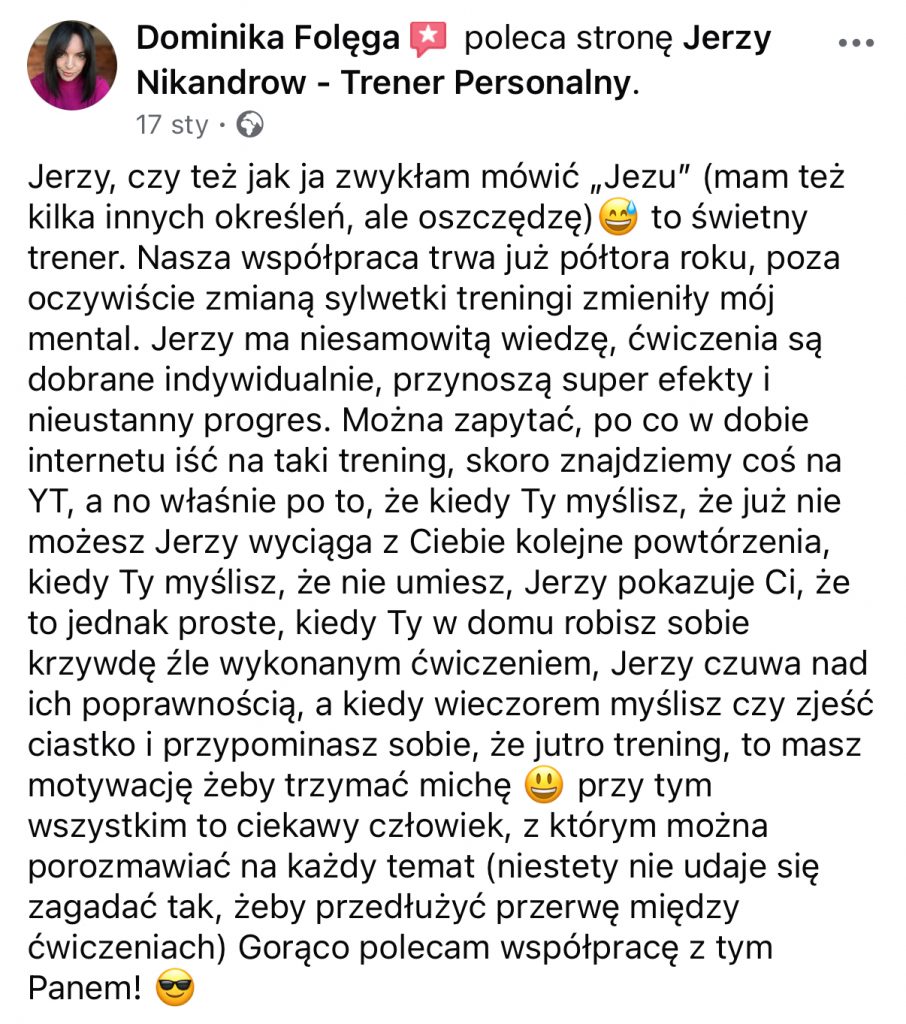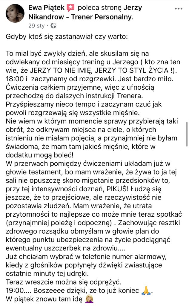 TRENINGÓW PERSONALNYCH